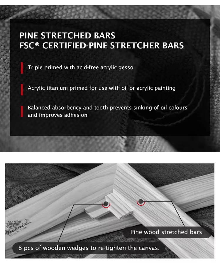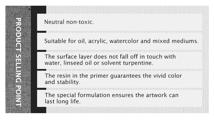 ● Durabilidade de longa data:Esta tela de arte criada para desenho. A estrutura de pinheiro seca por forno resiste a deformar em ambientes de umidade de 30% a 70%. As superfícies primárias aceitam tinta a óleo, tinta acrílica e mídia mista sem sangramento.