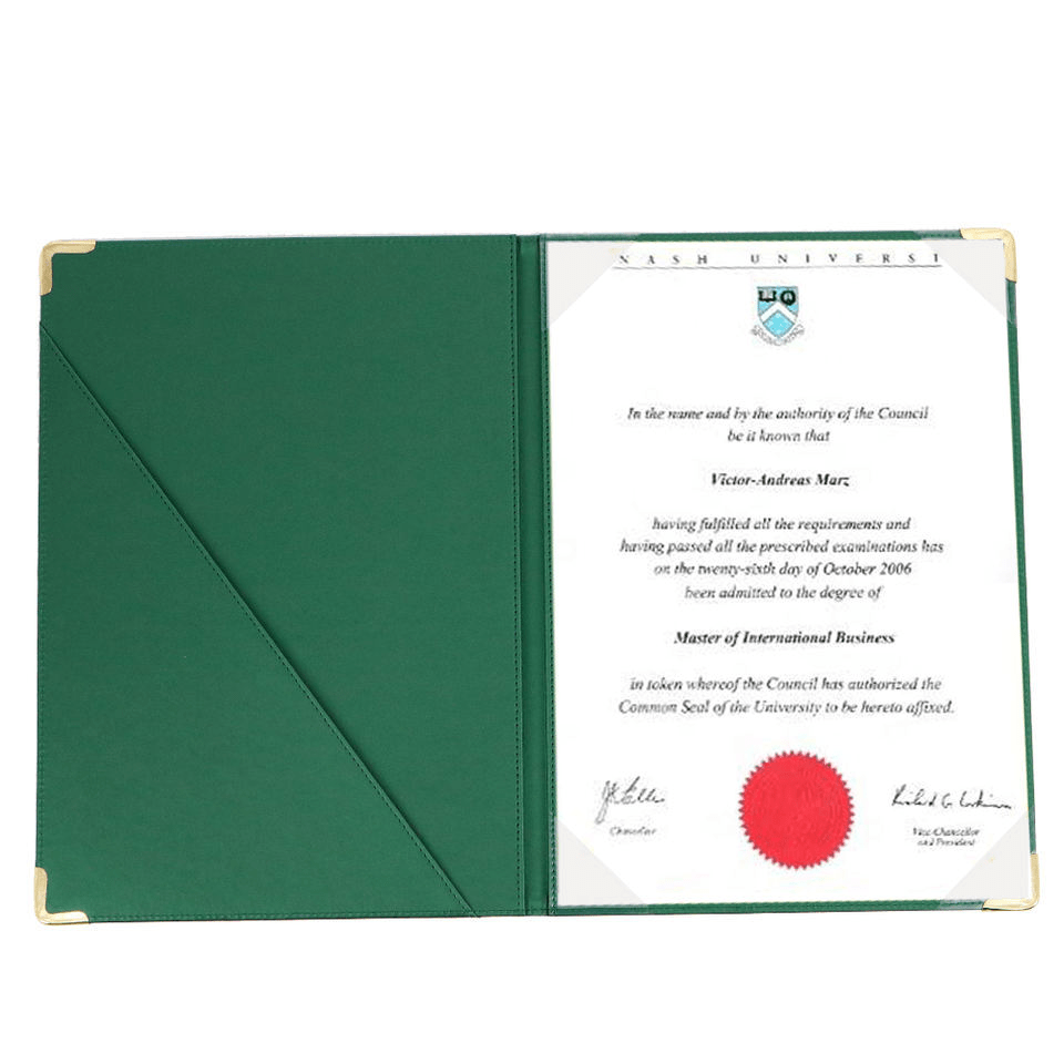 Um titular de diploma é essencialmente um titular de certificado especializado usado em ambientes acadêmicos. Escolas e universidades as usam em quase todas as cerimônias de formatura. Ao contrário das capas básicas, os detentores de diploma geralmente incluem o logotipo da escola, o ano de formatura e, às vezes, o nome do aluno. Materiais premium, como couro acolchoado ou couro, são comuns, dando -lhes uma aparência formal e duradoura. Os custos geralmente caem entre US $ 20 e US $ 40, mas sua durabilidade os torna uma opção de longo prazo para exibir conquistas.