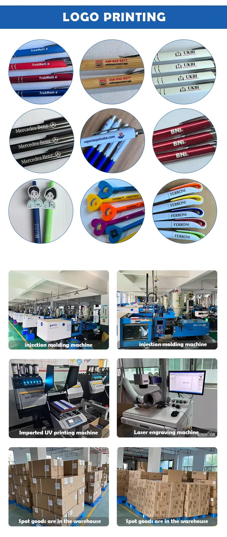 ● Powerhouse de marketing: Tem uma caneta de plástico promocional? Então você tem um mini outdoor andando por meses. Essas coisas são vistas em todos os lugares - cafeterias, reuniões e até em casa - colocando a marca na frente e no centro sem que você levante um dedo. É a publicidade que realmente permanece por aí. Muitos nossos clientes fornecem seu cliente para fins de publicidade e obtêm um bom resultado.