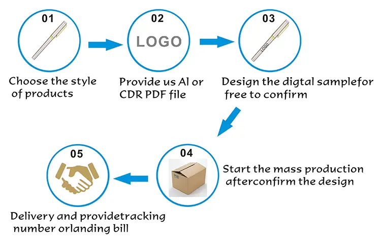 ● Personalização do logotipo que aparece: Quer seu logotipo cristalino claro e nítido? Nossas canetas promocionais acertam sempre com gravura a laser ou impressão de almofada nítida. Combinamos suas cores exatas Pantone - isso garantirá que seu cliente se lembre do seu logotipo quando tiver demanda.