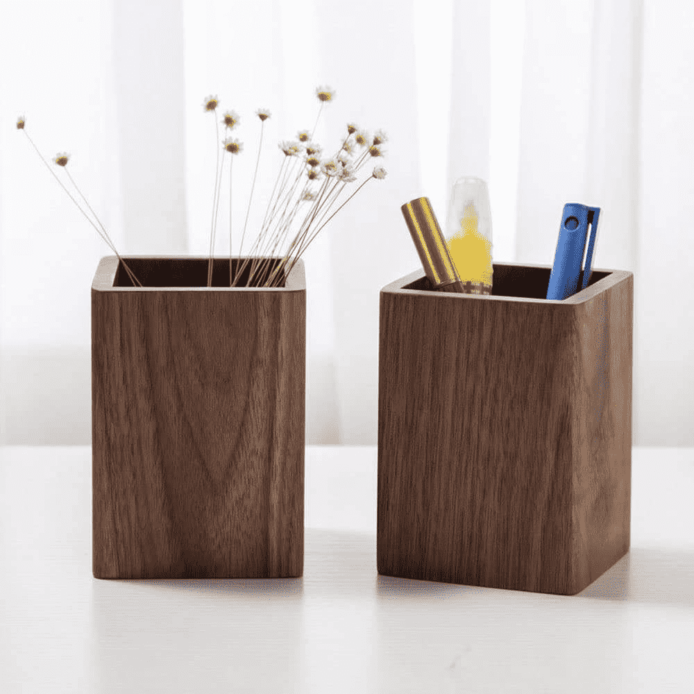 Nosso porta-canetas de madeira combina com tendências ecológicas.
